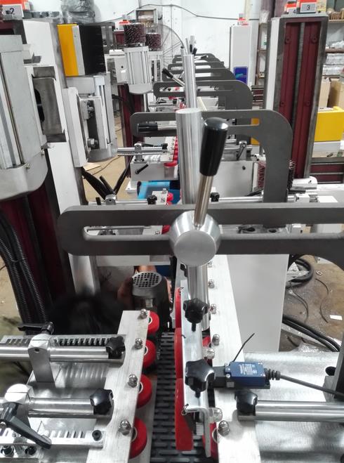 5.采用多点分段多角度压料方式,在顺利输送各种表面异形工件同时,防止工件左右摆动,并纠正工件左右弯曲,由于所有压料位均为橡胶材质,因此,能有效的避免对工件表面的摩擦损伤。